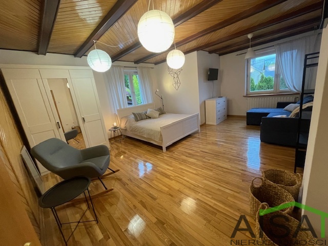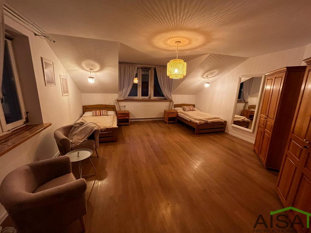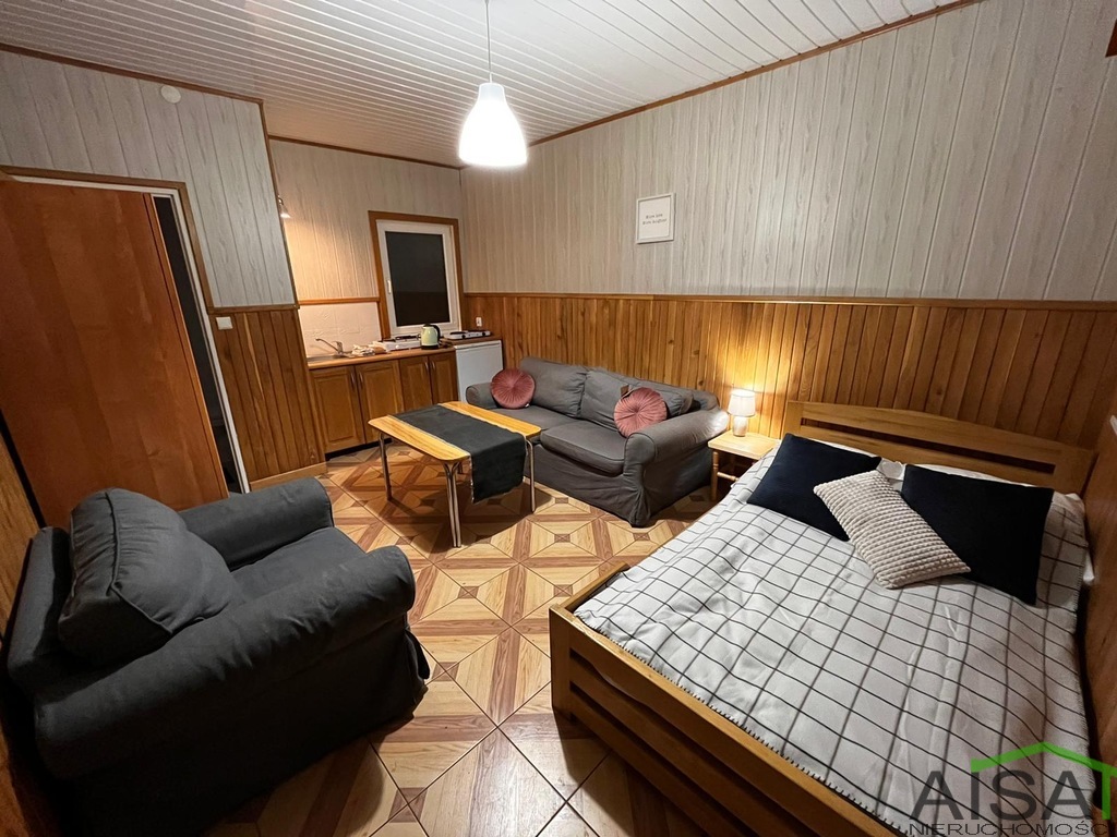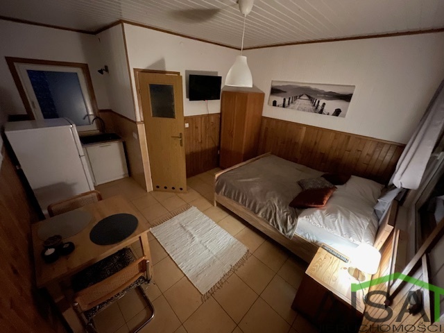 Na 2 działkach o łącznej powierzchni ok. 1700 m2 znajdują się 3 domy * Dom główny o powierzchni 326 m2, w którym znajduje się 6 sypialni, dwie łazienki, salon z kominkiem połączony z kuchnią i jadalnią, 2 tarasy. W bryle domu garaż. Możliwość podzielenia na 3 mieszkania z oddzielnym wejściem. Dom częściowo podpiwniczony, z niezagospodarowanym poddaszem. Założona jest fotowoltaika oraz gruntowa pompa ciepła. Obecnie komfortowe warunki do spania dla 18 osób. * Całoroczny dom z bala o powierzchni 30 m2, ogrzewany pompą ciepła. Znajdują się w nim 2 sypialnie, kuchnia i łazienka, do domu przynależy altanka. * Domek letniskowy o powierzchni 88 m2, podzielony na 4 części - 30 m2, czteroosobowy, dwie sypialnie, łazienka, aneks kuchenny, taras - 17 m2, dwuosobowe studio z aneksem kuchennym, łazienką i tarasem - 18 m2, dwuosobowe studio z aneksem kuchennym, łazienką i tarasem - 23 m2, powierzchnia do zagospodarowania Na terenie obiektu można jeszcze postawić 3 domki . Cały obiekt jest monitorowany. Do obiektu doprowadzony światłowód. Cena 2 950 000 zł. Więcej informacji pod nr 602 371 068